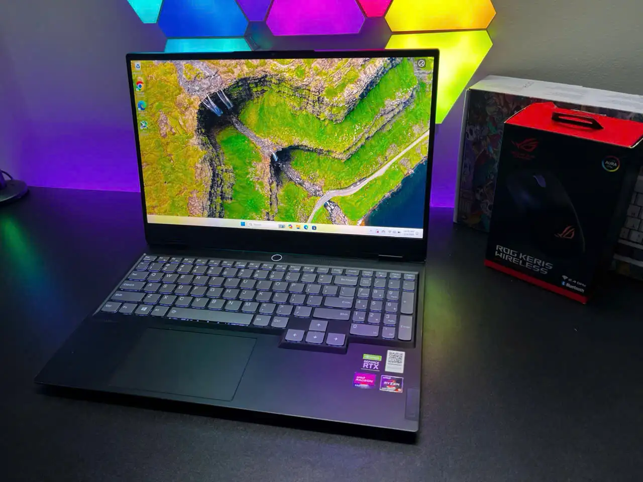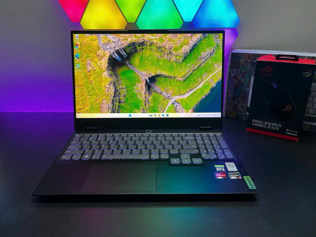 Lenovo đã trang bị cho Legion S7 một bàn phím Chiclet có đèn nền (bao gồm cả bàn phím số), có các phím có hành trình ngắn và điểm nhấn rõ ràng. Các phím mũi tên vừa phải và cách xa các phím xung quanh. Các phím NumPad nhỏ hơn và trông có phần chật chội hơn một chút. Nhưng cá nhân mình thấy không ảnh hưởng quá nhiều.