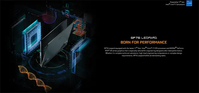 Đúng vậy, Laptop MSI GP76 Leopard 11UG 280VN được trang bị bộ vi xử lý CPU Intel Core i7 thế hệ thứ 11 mới nhất với mã hiệu là [Intel Core i7-11800H (upto 4.60GHz, 24MB)] cùng đồ họa tích hợp GPU NVIDIA GeForce RTX 30 series với mã hiệu là NVIDIA GeForce RTX 3070 8GB GDDR6 đặc biệt phù hợp với các nhà thiết kế kỹ thuật cần hiệu suất. Cho dù đó là tính toán kỹ thuật phức tạp, tính toán kỹ thuật cấp cao hay các yêu cầu thiết kế phức tạp, Laptop MSI GP76 Leopard 11UG 280VN đều đáp ứng mọi nhiệm vụ khắt khe.