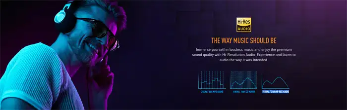 Đắm mình trong âm nhạc lossless và tận hưởng chất lượng âm thanh cao cấp với âm thanh độ phân giải cao. Trải nghiệm và nghe âm thanh theo cách nó đã dự định.
