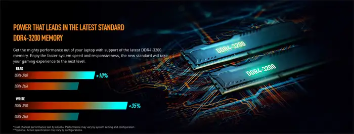 Tận dụng hiệu suất mạnh mẽ từ máy tính xách tay của bạn với sự hỗ trợ của bộ nhớ DDR4-3200 mới nhất. Tận hưởng tốc độ hệ thống và khả năng phản hồi nhanh hơn, tiêu chuẩn mới sẽ đưa trải nghiệm chơi game của bạn lên một tầm cao mới. Chính vì vậy mà các bạn không cần phải lo lắng gì về hệ thống bộ nhớ RAM của chiếc Laptop MSI GP76 Leopard 11UG 280VN này. Bởi vì nó cũng đang được trang bị 16GB (8GB*2) RAM DDR4 với tần số tốc độ siêu cao 3200MHz. Các bạn có thể mua về và sử dụng em nó ngay lập tức hoặc nâng cấp bộ nhớ RAM đó lên thành 32GB (16*2GB) hoặc 64GB (32*2GB) tùy ý.