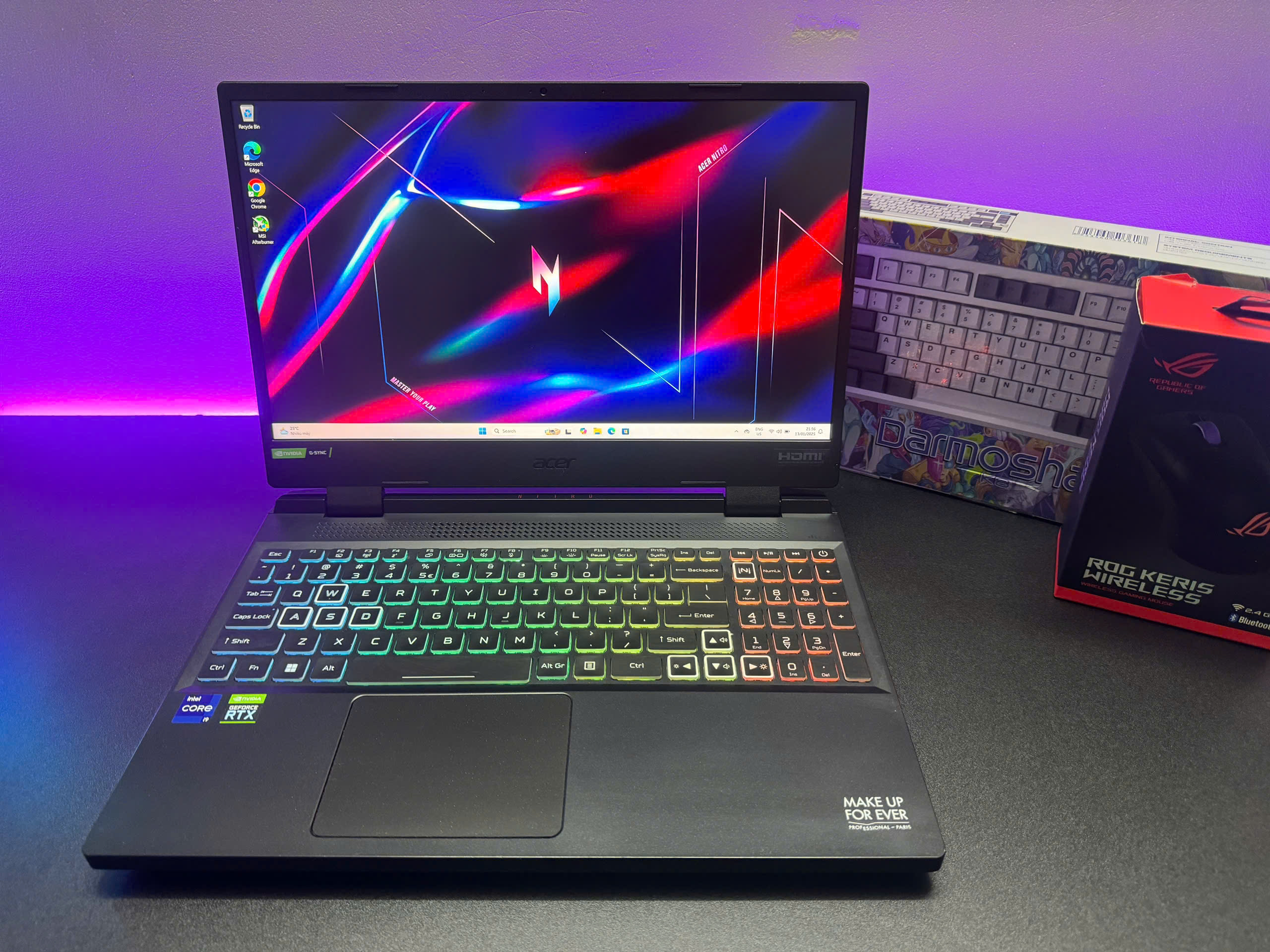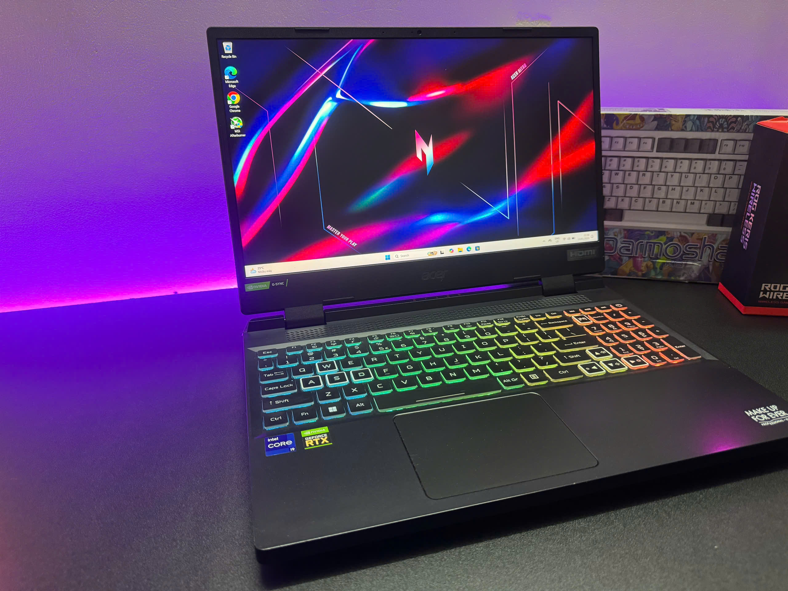 Đèn nền của chiếc Acer Nitro chưa bao giờ làm mình thất vọng với khả năng chuyển màuRGB 4 vùngtùy chỉnh, giúp mình tăng độ hăng hái mỗi khi “lao vào” trận chiến. Một điểm đặc biệt hơn nữa là trên chiếc bàn phím này còn trang bị thêm một khe hút gió để giúp máy hoạt động trơn tru, mát mẻ hơn.