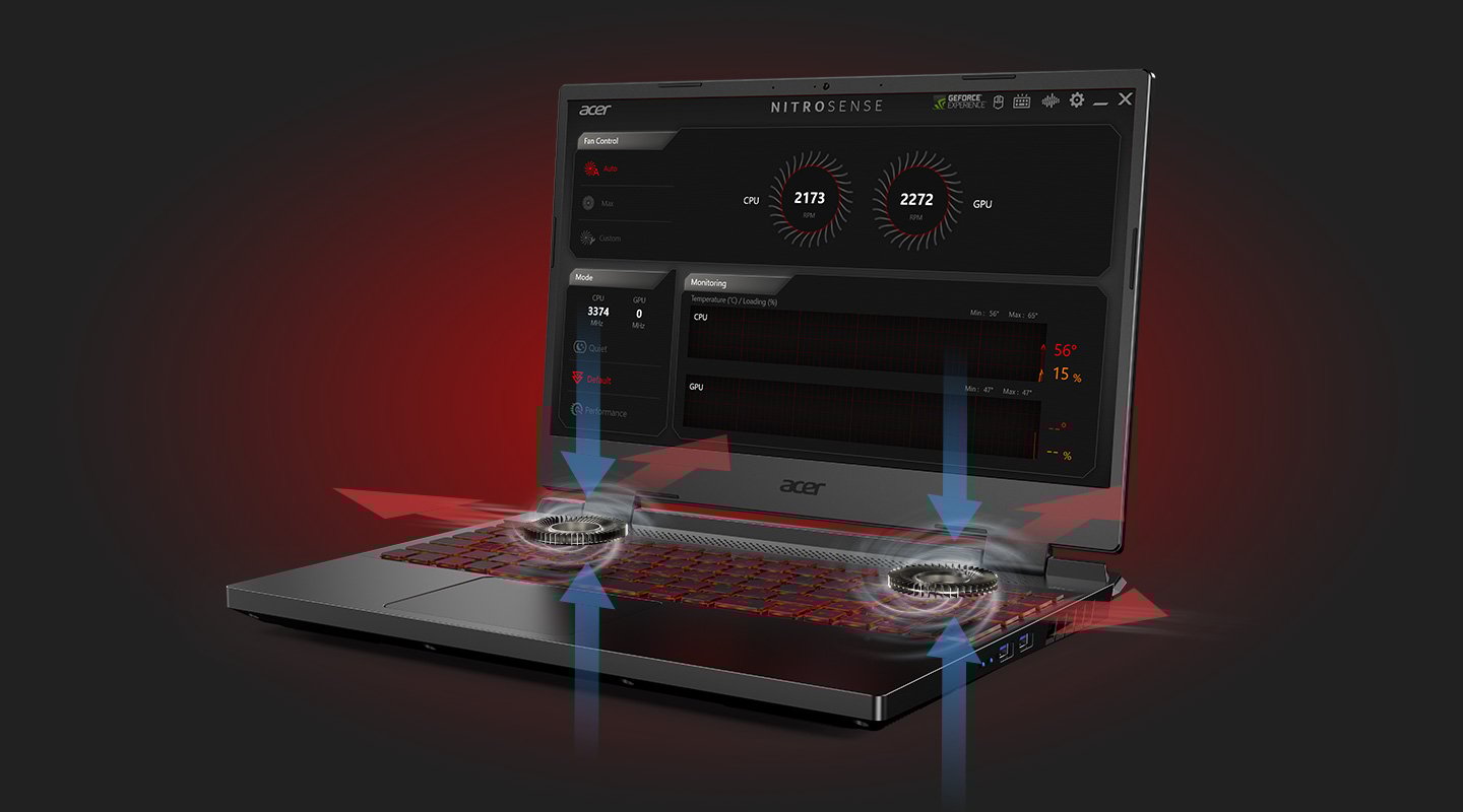 Khung gầm mới được tinh chỉnh đi kèm với một vài thiết kế được bổ sung như làm mát bằng quạt kép, cửa hút kép (trên và dưới) và thiết kế cổng bốn ống xả. Mở ứng dụng tiện íchNitroSenseđể kiểm soát thêm và chỉ huy tốc độ quạt, ánh sáng và hơn thế nữa.