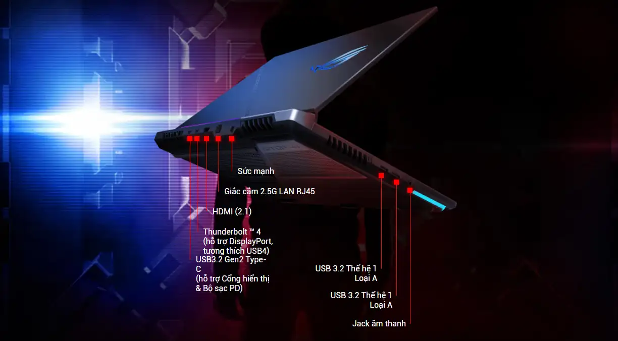 | Khả năng kết nối linh hoạt Asus ROG Strix SCAR 15hoạt động đa nhiệm hiệu quả hơn qua cổng USB-C với DisplayPort 1.4, xem phim 4K UHD trên màn hình lớn hoặc dễ dàng kết nối máy chiếu với HDMI 2.1. Kết nối các thiết bị ngoại vi để bạn thoải mái sáng tạo.