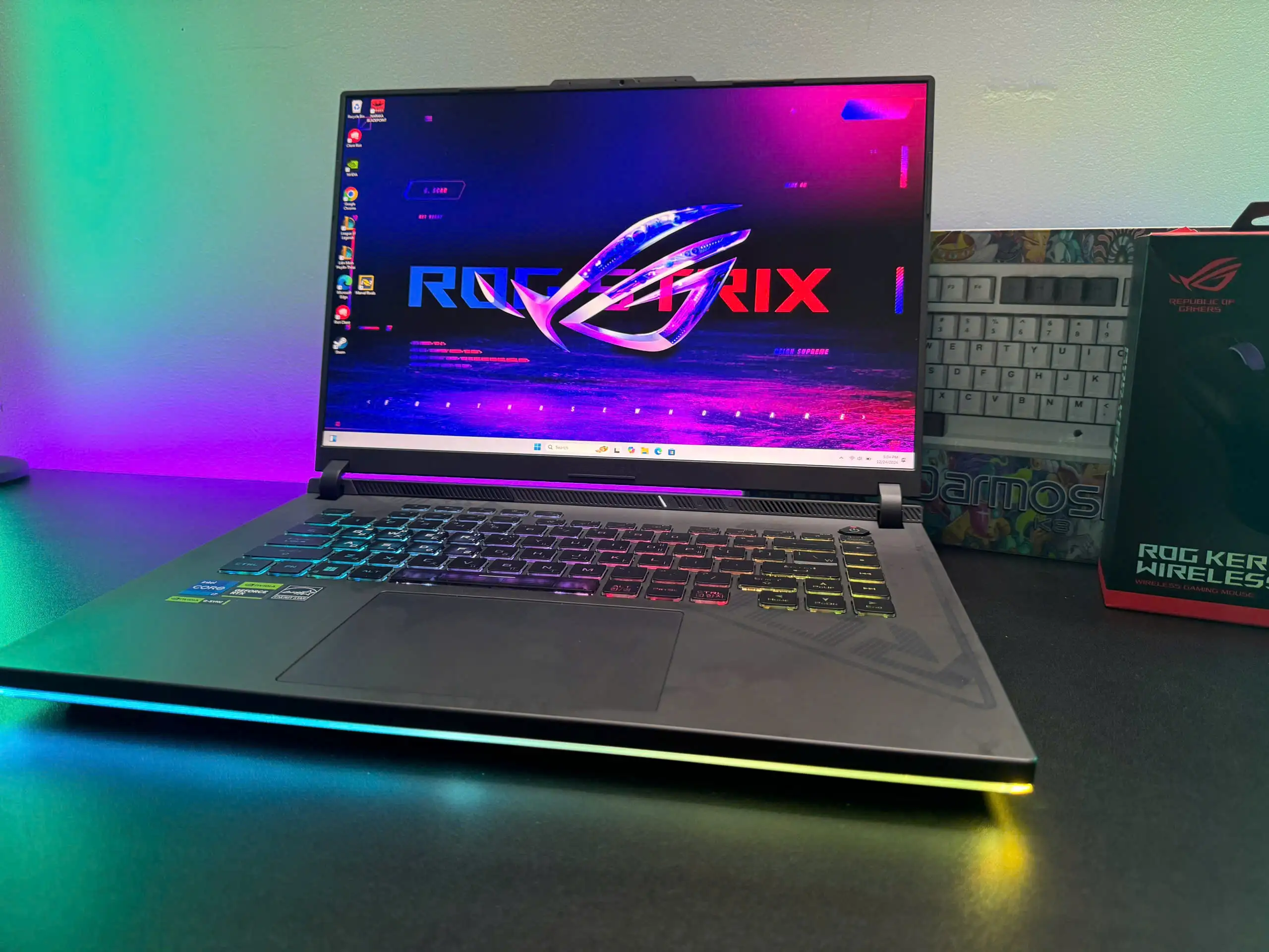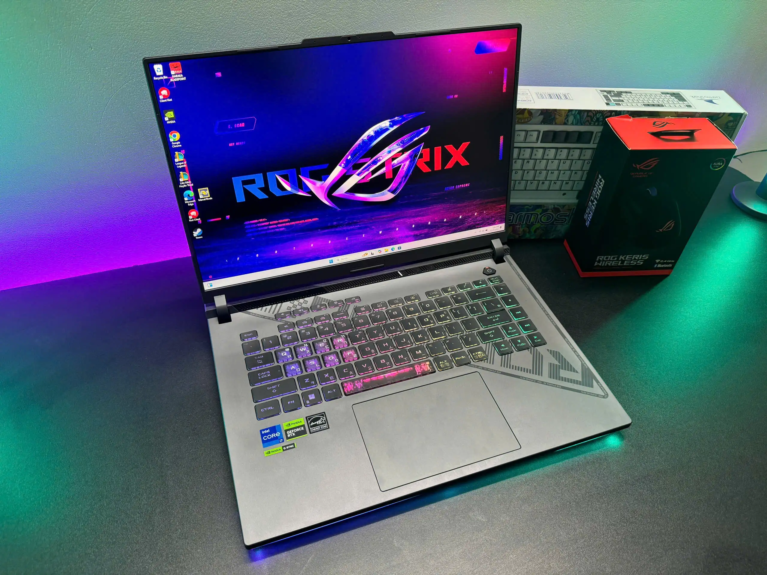 Chức năng tuỳ chỉnh RGB trên từng phím là một trải nghiệm sáng tạo và cá nhân hoá vô cùng hấp dẫn. Chìm đắm trong thế giới đa sắc màu giúp bạn luôn có những trải nghiệm sống động và đầy cảm xúc, thiết lập dấu ấn của riêng bạn và giao lưu cùng cộng đồng sáng tạo ROG để kết nối thêm phần thăng hoa.