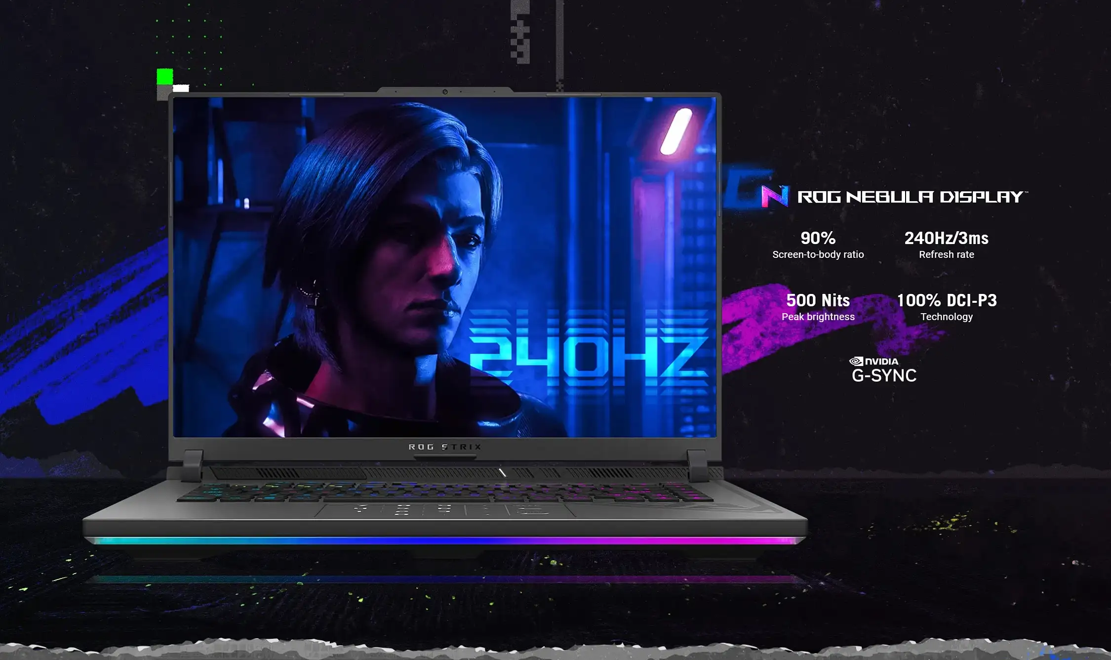 Màn hình củaROG Strix G16 G614JV-N4455Wcótần số quét tối đa 240Hzvà độ sáng được nâng cấp tới 500 Nit (độ sáng sử dụng tốt ngay cả trong môi trường ánh sáng tự nhiên). Độ phủ màu siêu rộng100% DCI-P3tăng cảm xúc sắc màu trong trải nghiệm gaming đồng thời có thể phục vụ xuất sắc mọi nhu cầu về sáng tạo hình ảnh.
