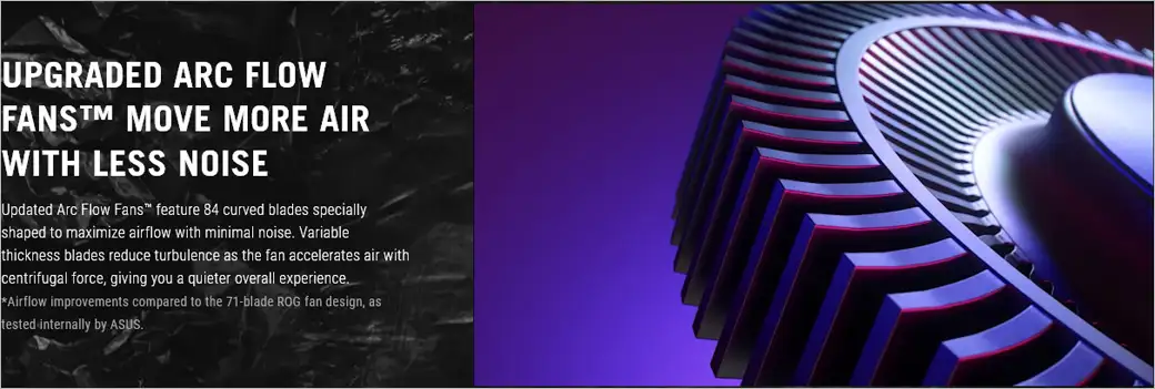 *Cải tiến luồng không khí này đã được so với thiết kế quạt ROG 71 cánh, như đã được ASUS thử nghiệm nội bộ trước đó.