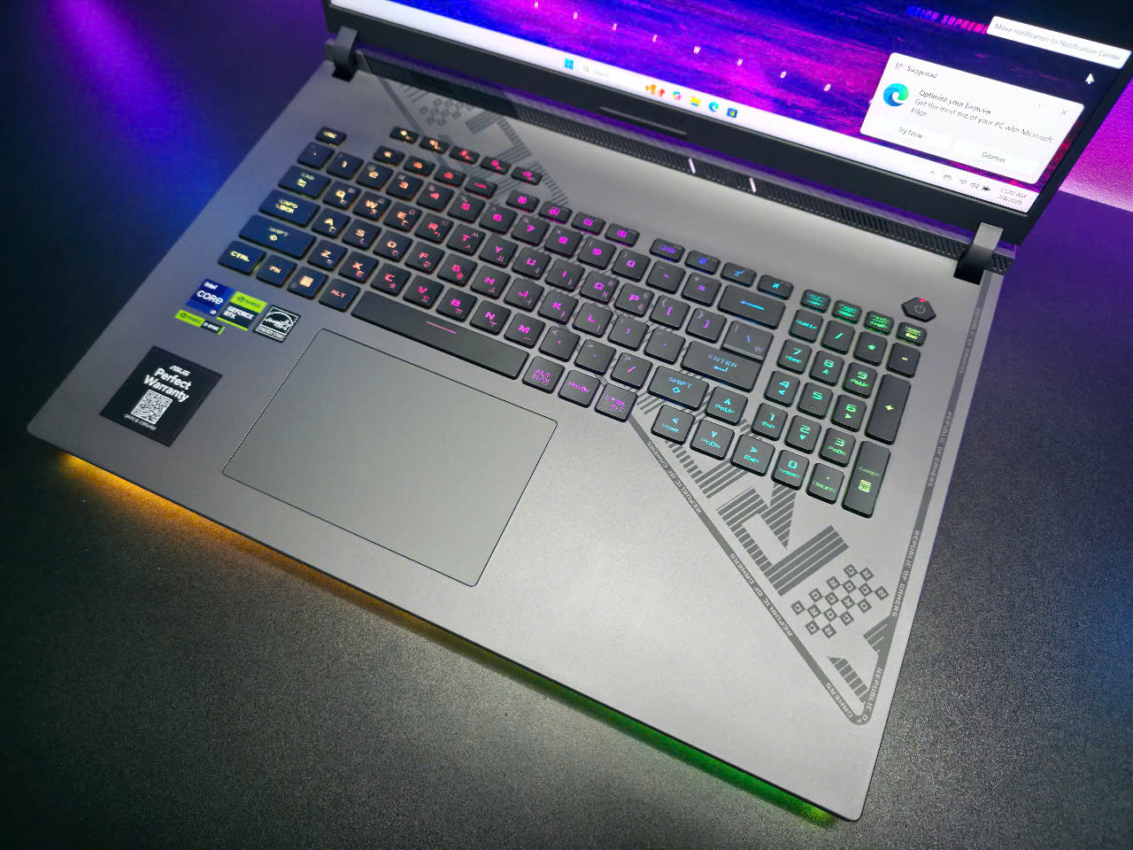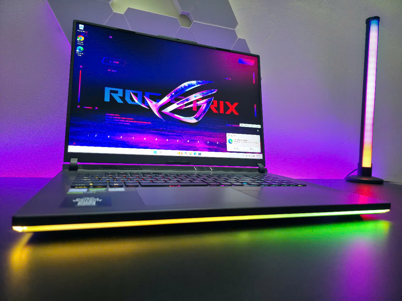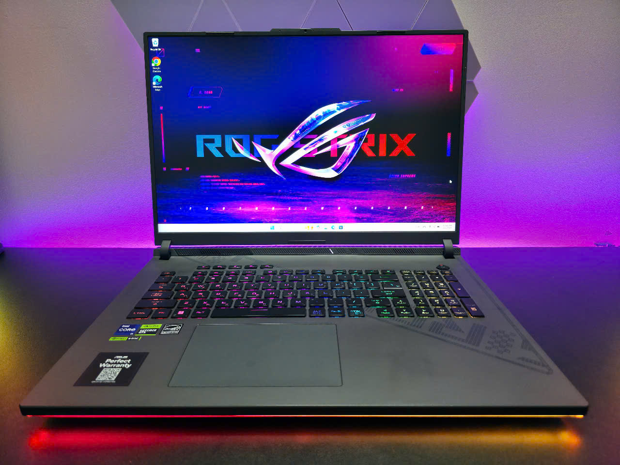 Laptop ASUS ROGStrix G18 sở hữu màn hình18 inch QHD+ (2560 x 1600)với tỷ lệ16:10, mang lại không gian hiển thị rộng rãi và hình ảnh chi tiết, sắc nét. Tần số quét240Hzvà thời gian phản hồi3msđảm bảo trải nghiệm chơi game mượt mà, giảm hiện tượng giật lag và xé hình. Tấm nền IPS cung cấp góc nhìn rộng, phù hợp cho cả gaming lẫn làm việc sáng tạo.