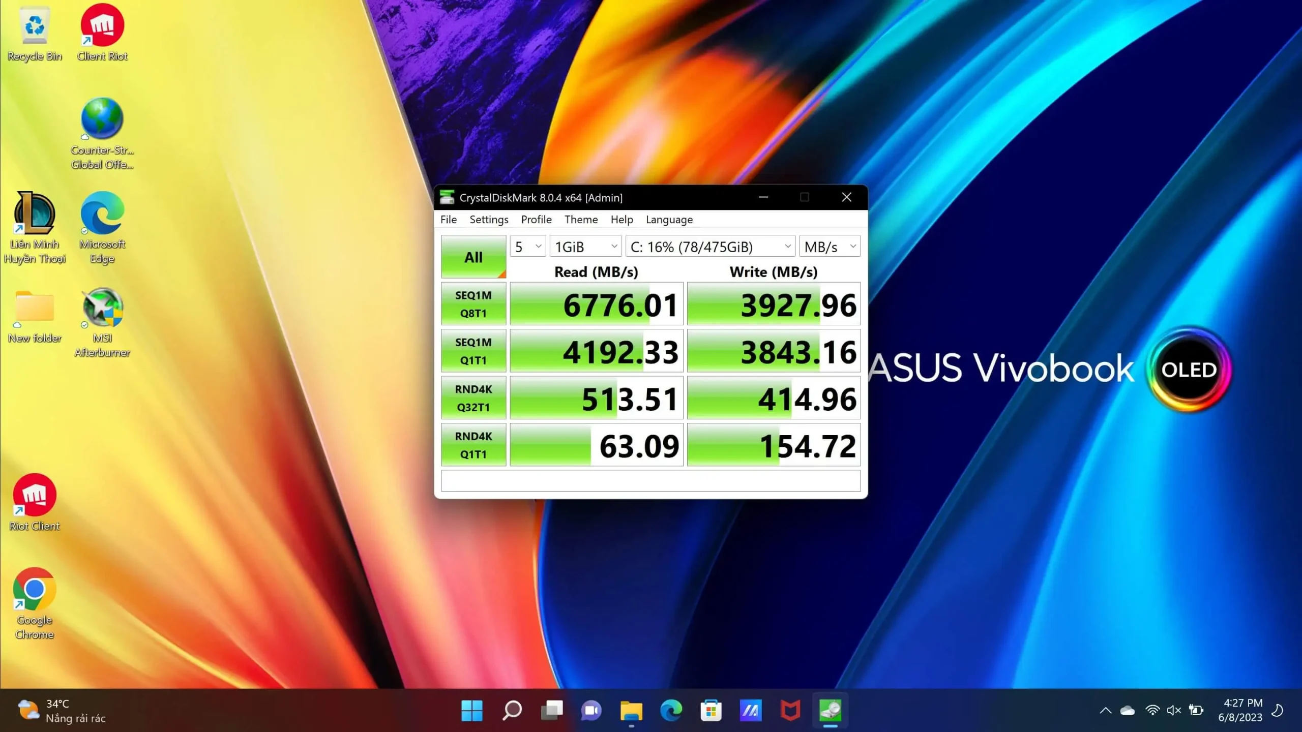 Được thiết kế cho mục đích chính cho làm việc, nhưng với cặp đôi Ryzen 7 6800H – RTX3050 thì chiến Game cũng không phải điều gì quá khó khăn. Những tựa Game online thông dụng như CSGO, LOL hoàn toàn đạt được mức Fps rất tốt trên chiếc Vivobook này.
